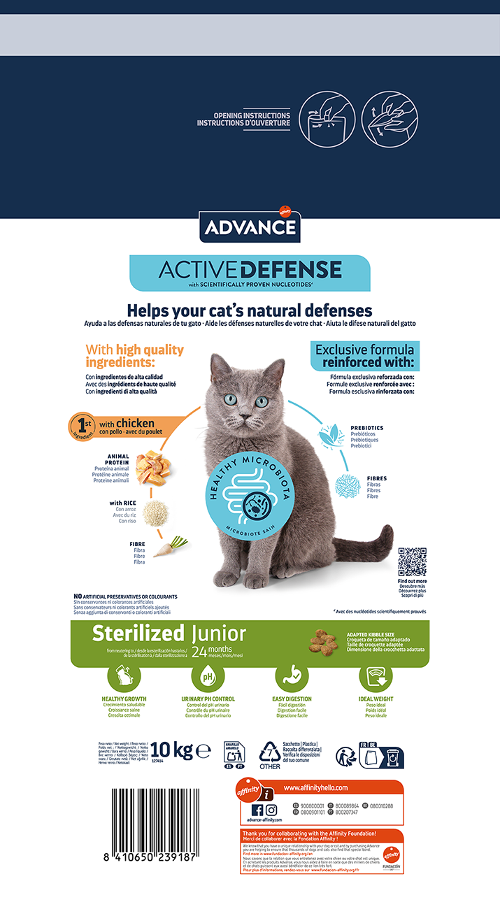 Hrană Super Premium, completă și echilibrată, special recomandată pentru pisicile junioare de la sterilizare până la 24 de luni.