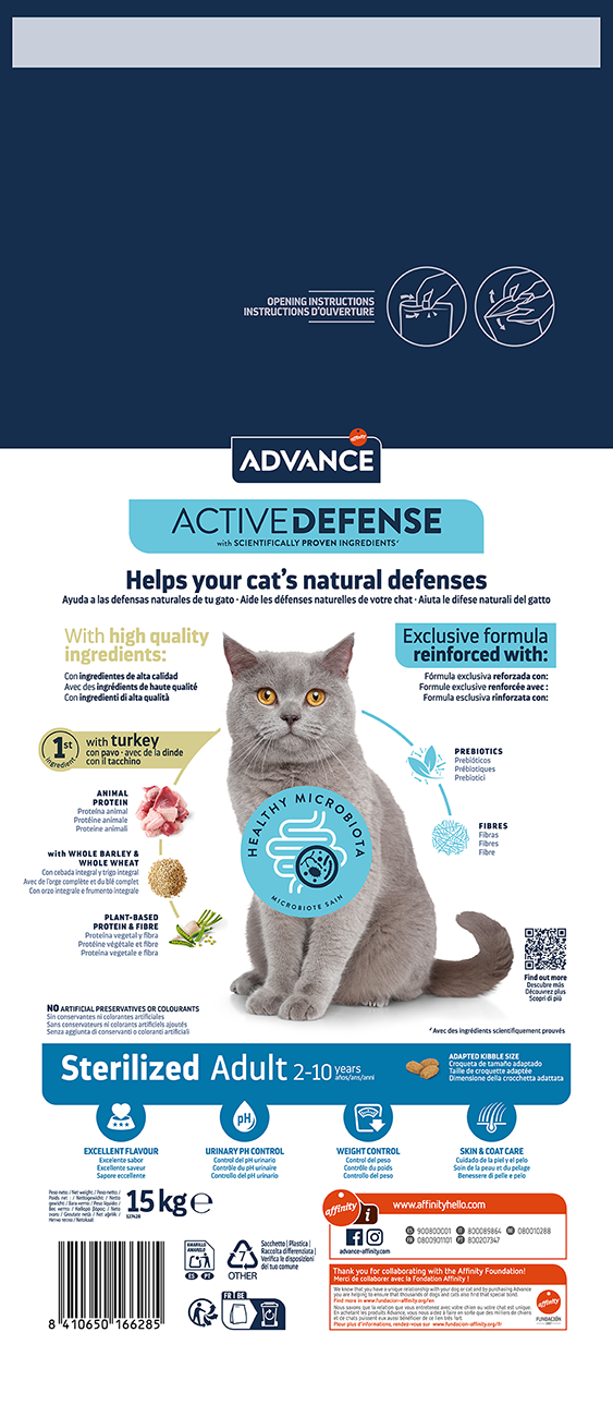 Hrană Super Premium, completă și echilibrată, special formulată pentru pisicile adulte sterilizate cu vârsta de 2 până la 10 ani.